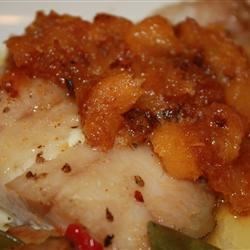 Lightly seasoned grouper is topped with a tropical mango sauce.